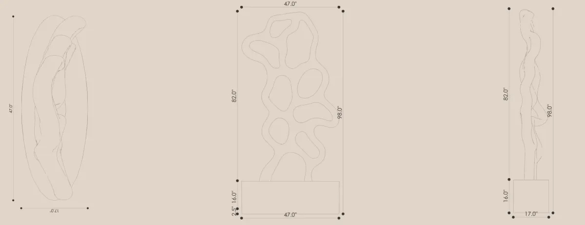 The Biomorphic Screen Divider rises in organic curves, evoking coral formations, root systems, and other living geometrics. Handsculpted in flowing voids and solid bridges, it defines without separating, creating transparency, motion, and shadowplay within a space.