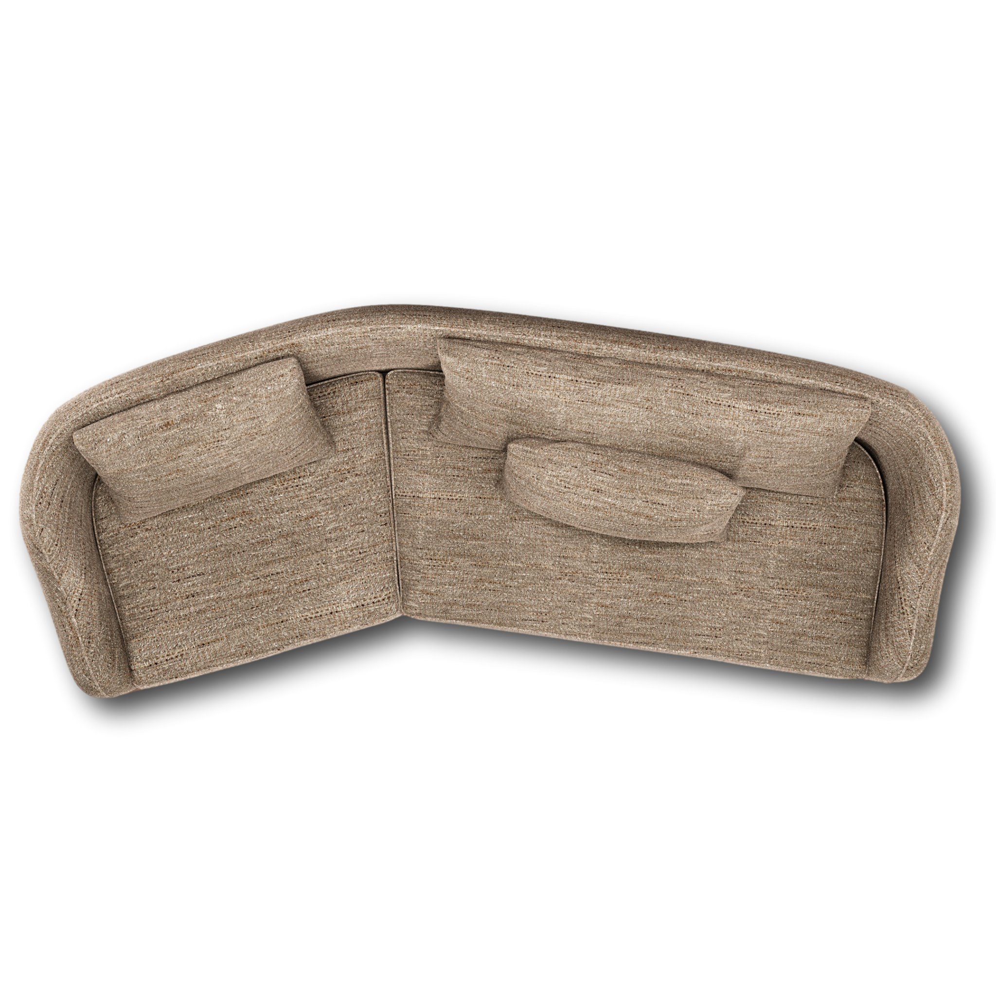 The sofa features an irregular curved shape, creating a sculpted and dynamic silhouette.